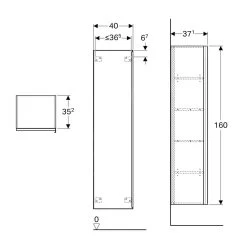 Geberit Acanto – Hoge Badkamerkast 1730×380 Mm, 2 Deuren, Zwart 500.619.16.1