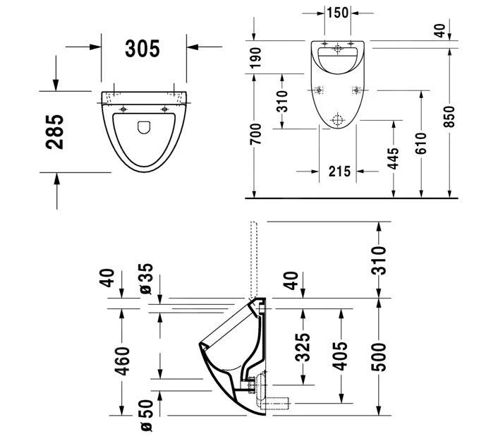 Het urinoirdeksel is niet inbegrepen.