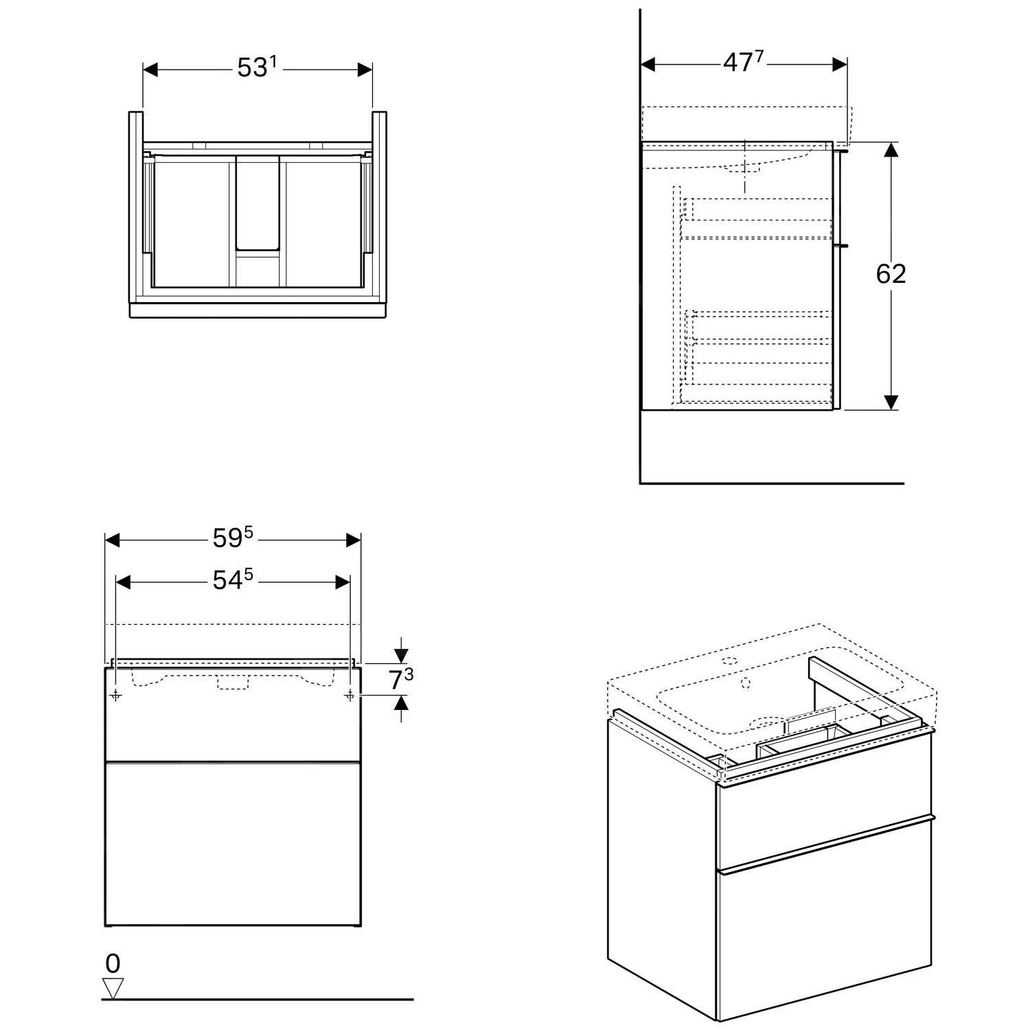 - afmetingen kastje: 59,5 x 62 x 47,7 cm (bxhxd)
