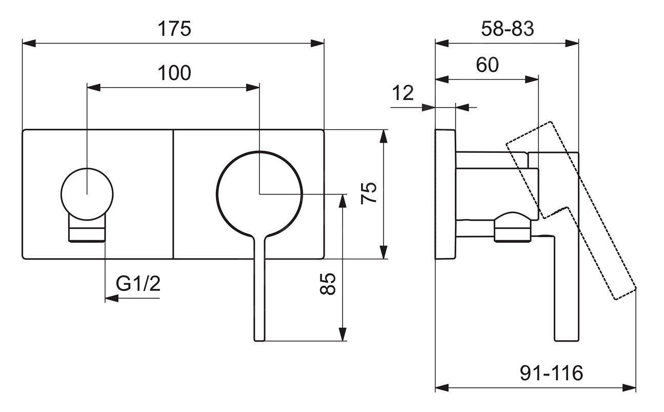 - doucheaansluiting G 1/2, voor aansluiting van handdouche