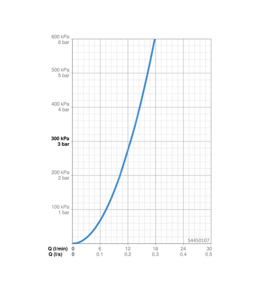 - straal bij 0,3 MPa: 12,6 l/min