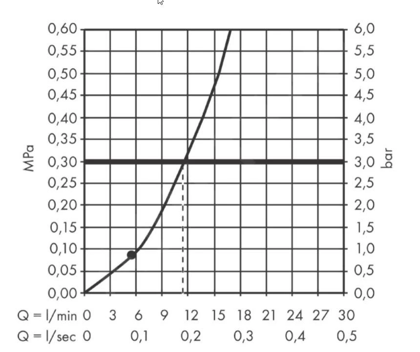 - maximale doorstroming bij 0,3 MPa: 11,7 l/min