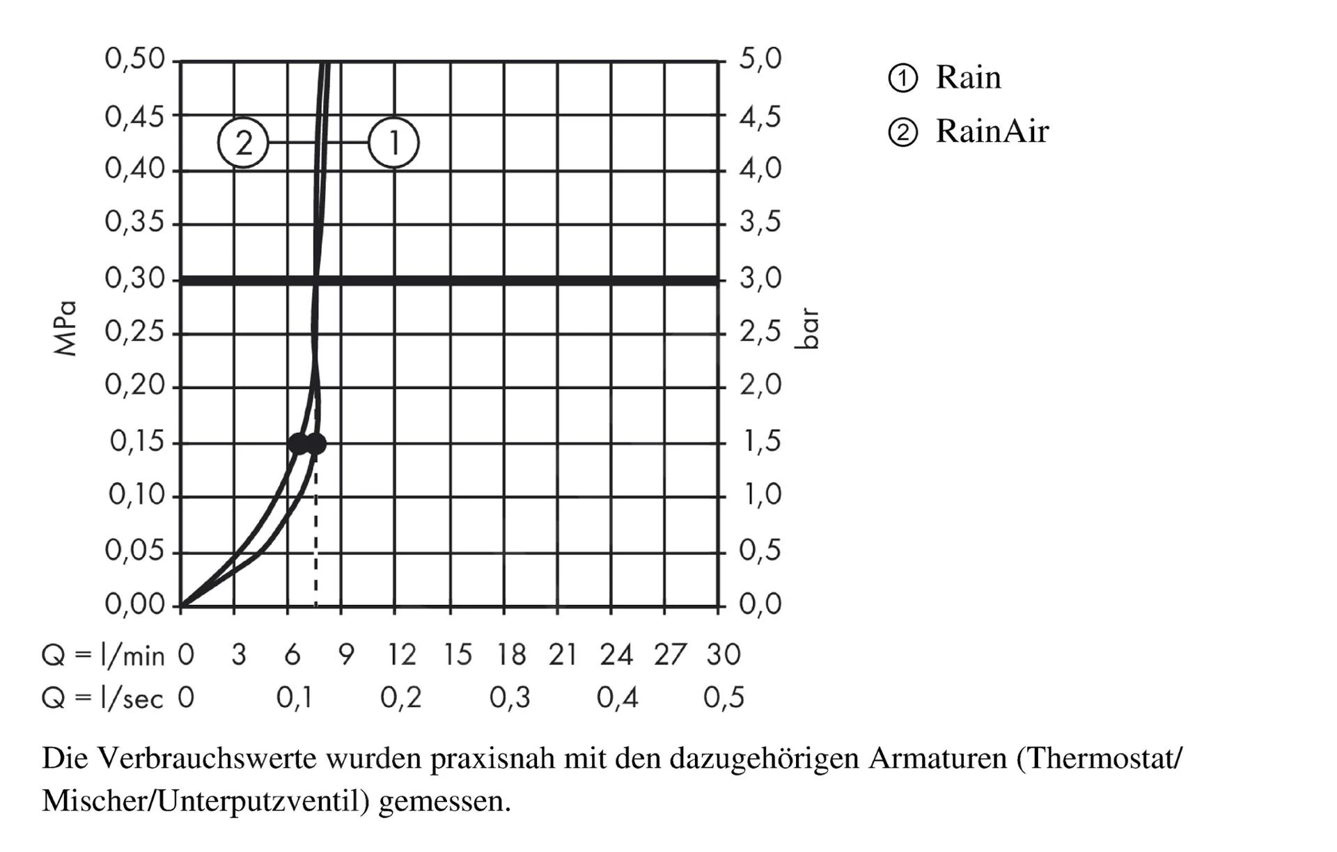 - doorstroming bij RainAir (bij 0,3 MPa): 9 l/min
