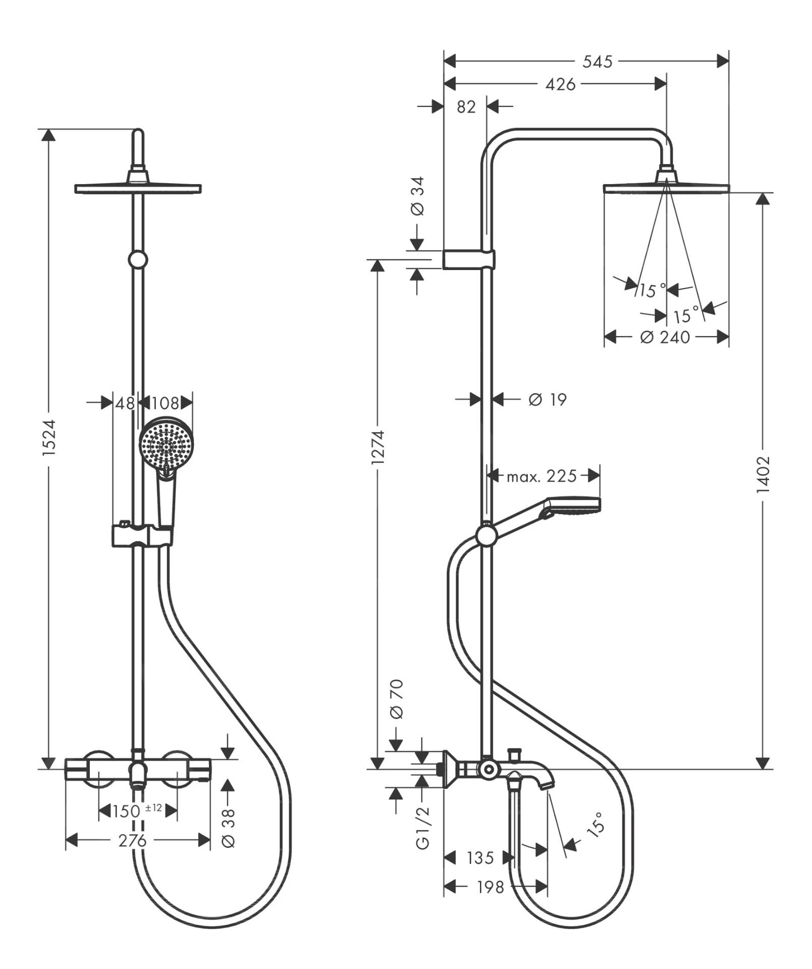 - maximale doorstroming bij 0,3 MPa:Â 15,2 l/min