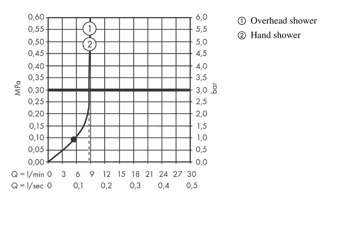 - maximale doorstroming bij 0,3 MPa: 9,7 l/min