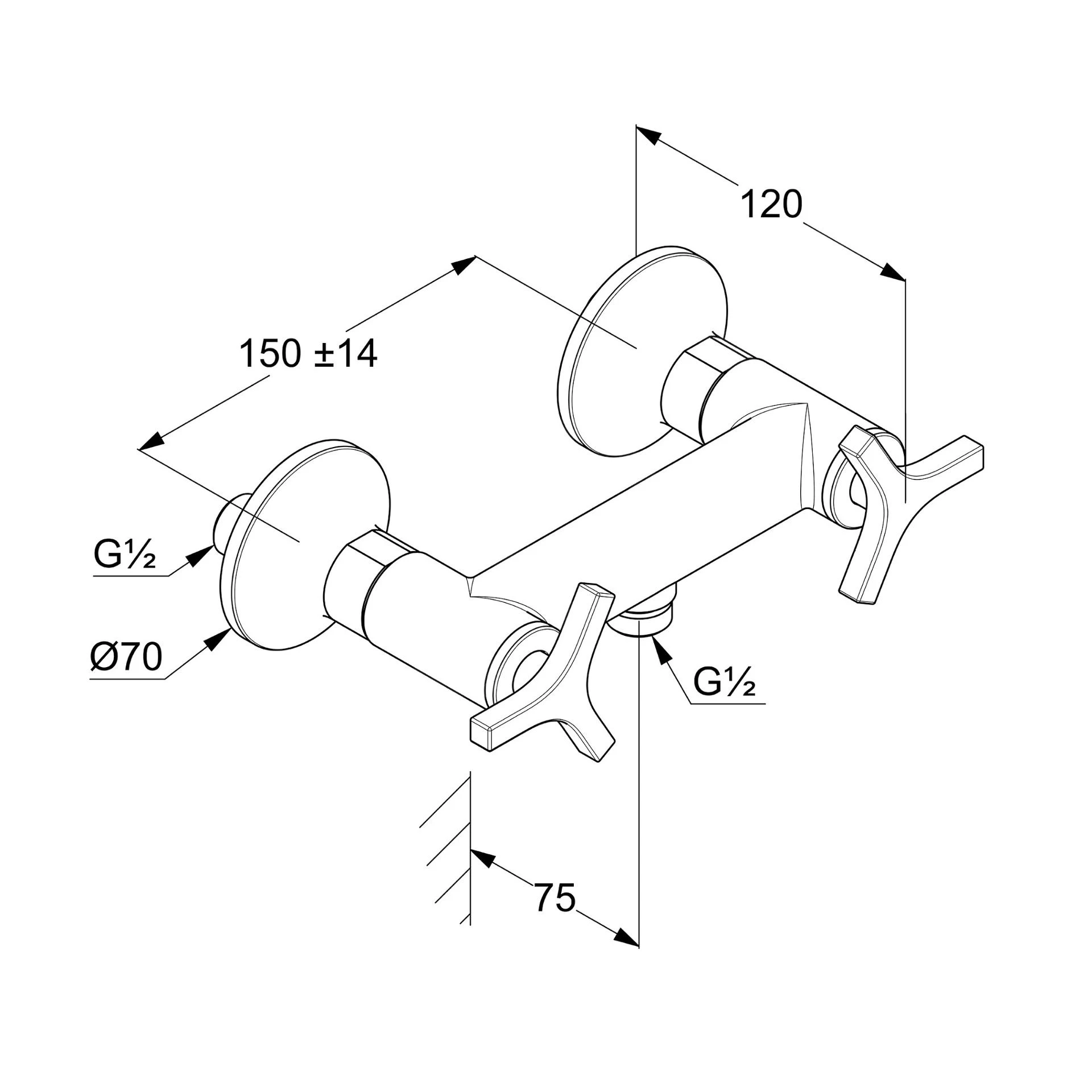 - hartafstand aansluiting 150 mm