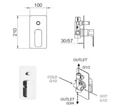 Paffoni West – Inbouwkraan Voor 2 Uitgangen, Chroom WSBOX015CR