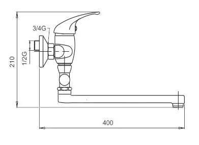 Eengreeps badkraan voor in flat zonder toebehoren, wandmontage