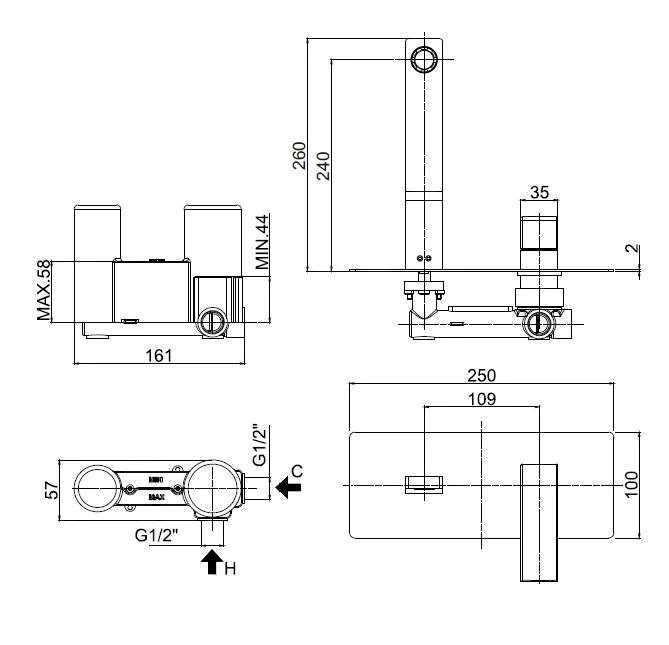 Eengreeps inbouw wastafelkraan met inbouwdeel.