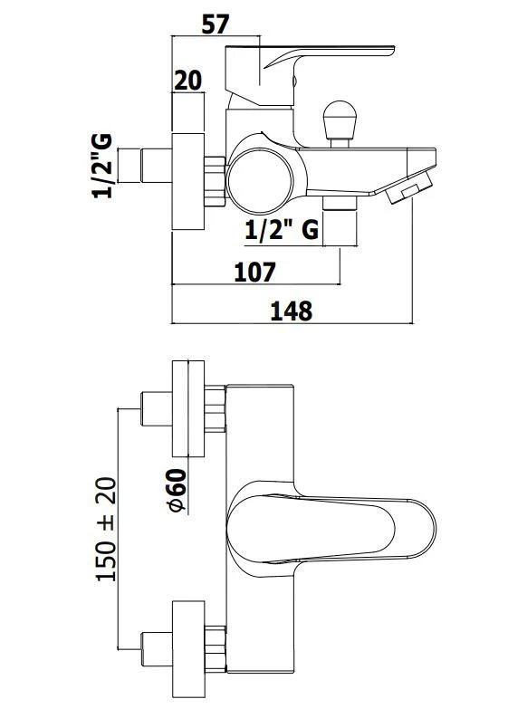 Wandgemonteerde badkraan inclusief douchekop, houder en slang
