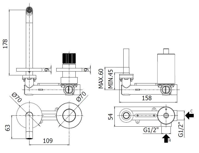 Installatie op inbouwdeel (wordt bij de kraan meegeleverd).