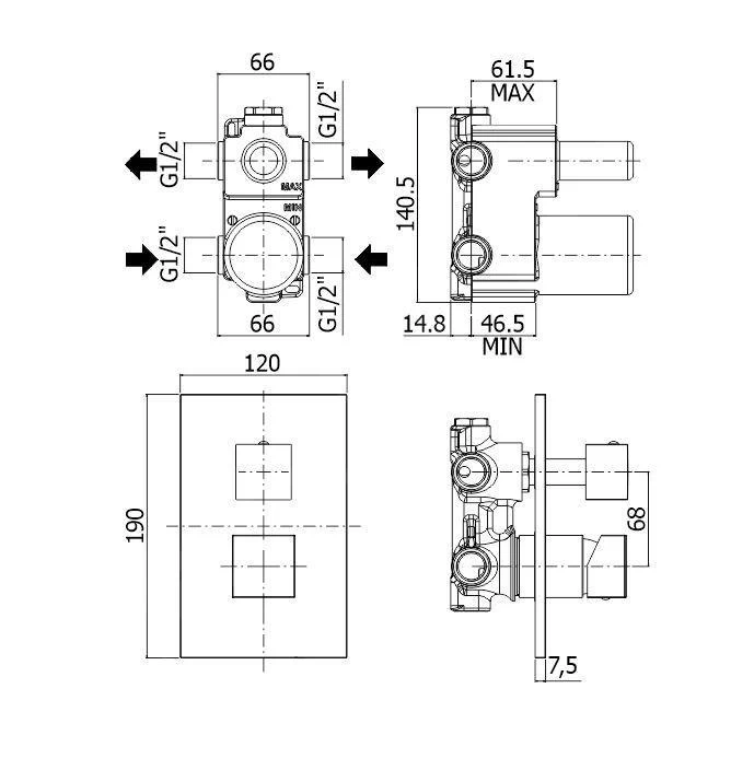 Eengreeps douchekraan met draaibare omstelling incl. inbouwdeel voor 2 uitgangen