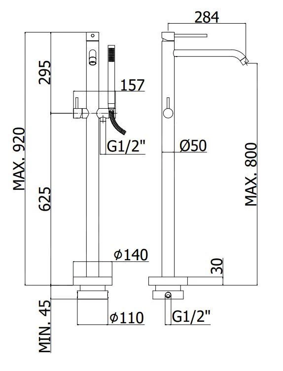 - geschikt voor installatie bij vrijstaand bad