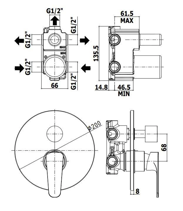 - met omstelling voor 3 uitgangen en 3 gecombineerde standen