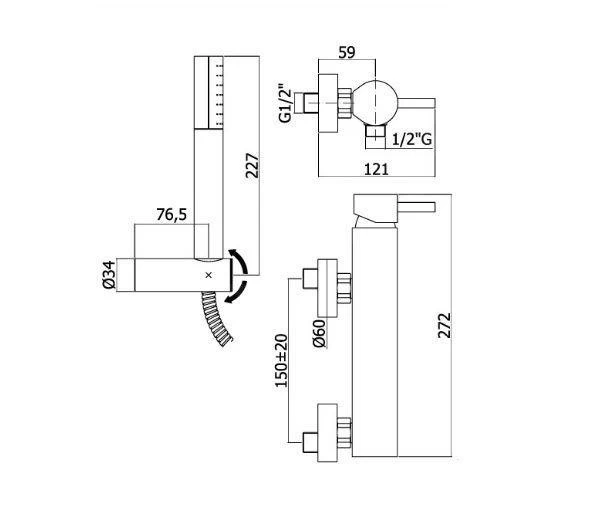 De set bevat een kraan, afdekkappen voor S-koppelingen, flexibele slang, handdouche en douchehouder.