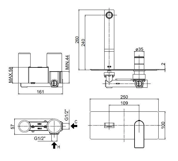 - G 1/2″ aansluiting