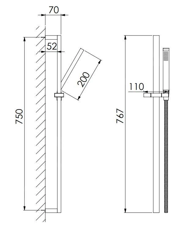 - met douchestang 750 mm