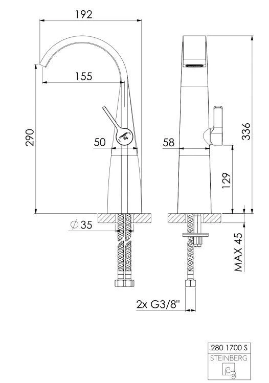 - lengte uitlaat 155 mm