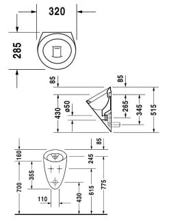 Duravit Starck 1 – Urinoir Zonder Deksel, 320×285 Mm, Met WonderGliss, Wit 08353200001